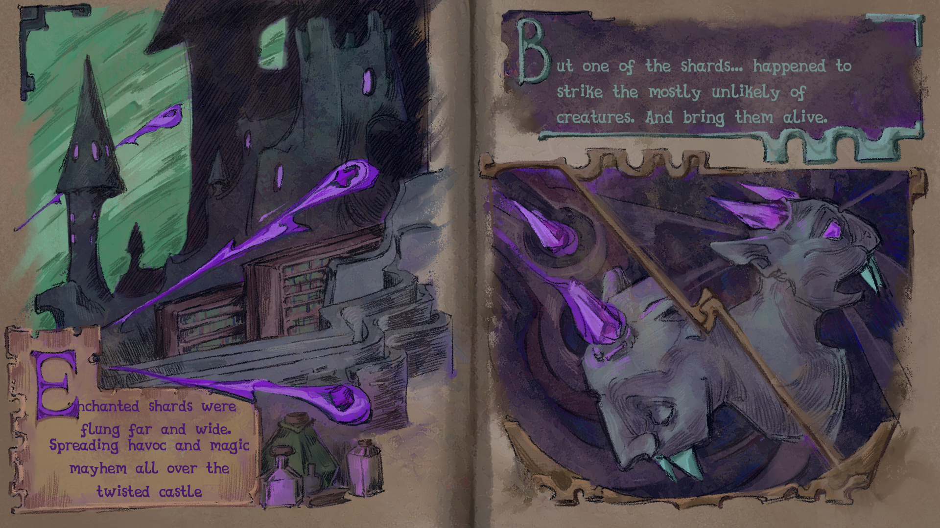 Keeping with fantasy theme we had the idea to make the intro like a storybook.