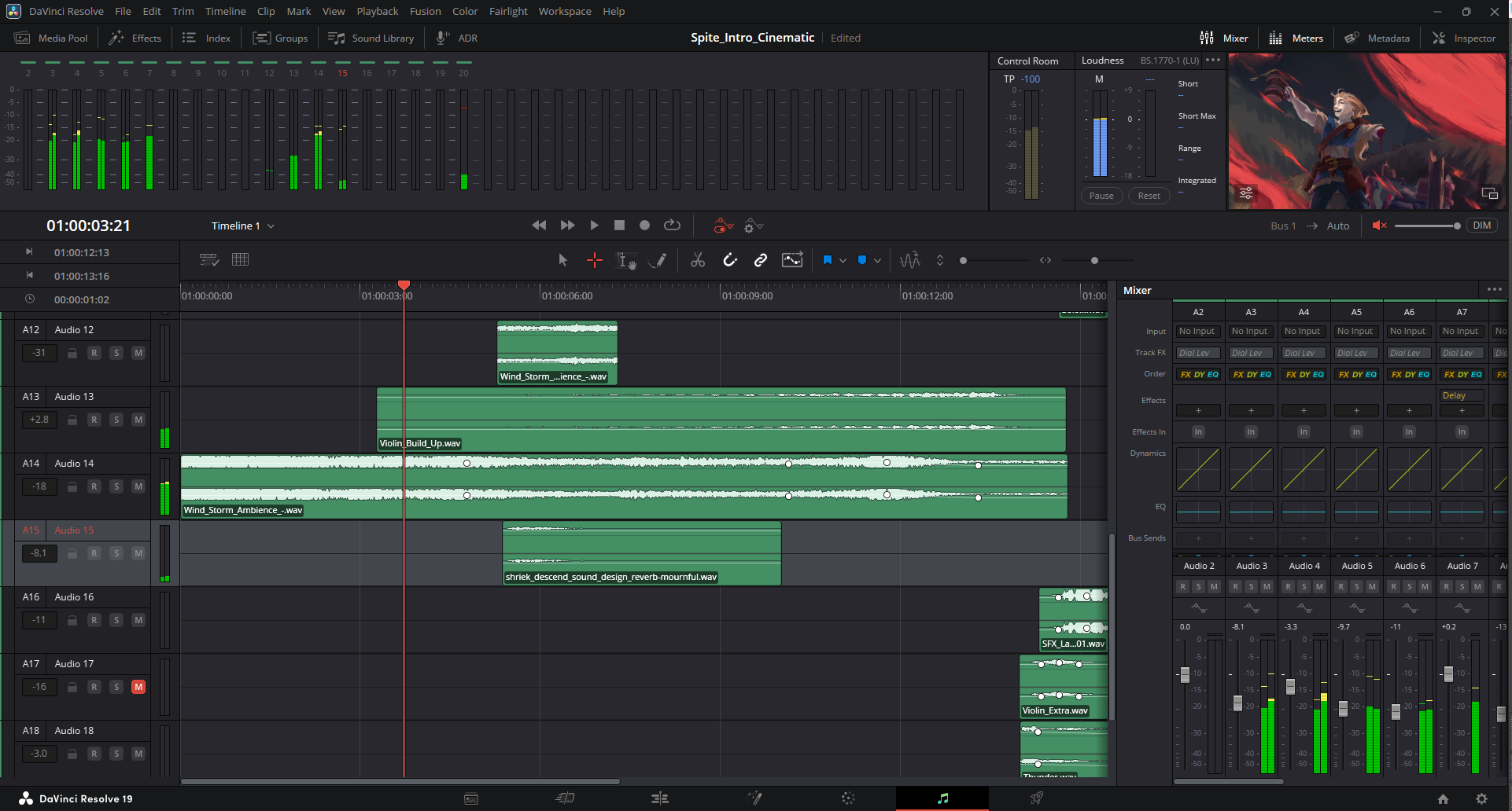 In DaVinci I added the sound effects. It was the first time I worked with sound. A lot of time was spent on finding the right sound and mixing it with others to create the right effect.